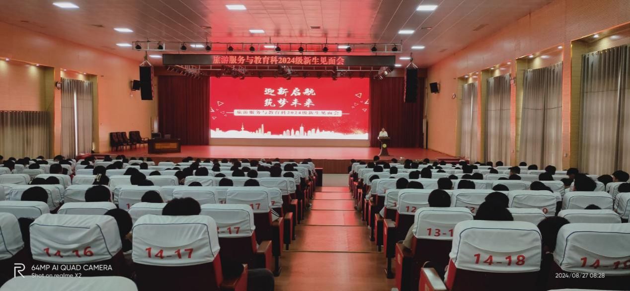 8月27日上午,旅游服务与教育科在学术报告厅举行新生见面会,旅游服务与教育科全体教师、2024级全体新生以及2023级学生代表参加新生见面会,旅游服务与教育副科长粟穗馨主持见面会。