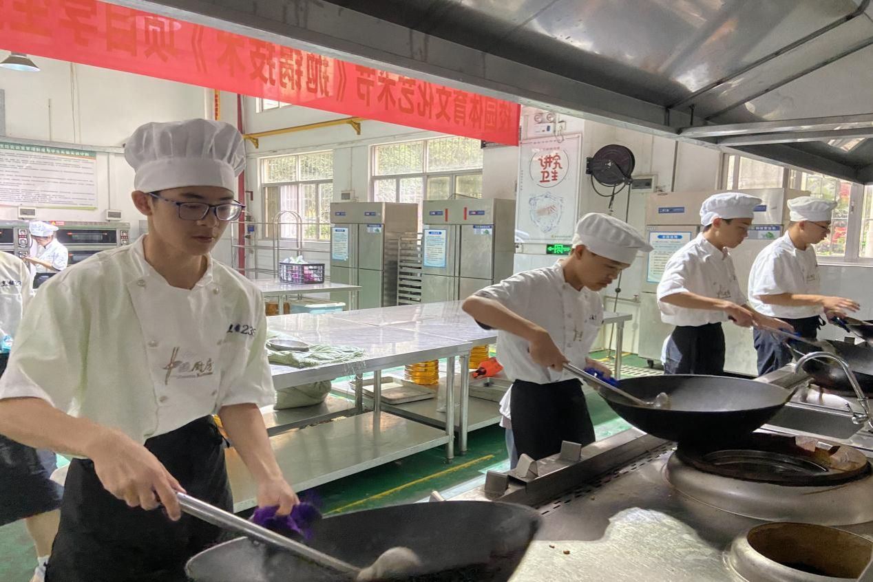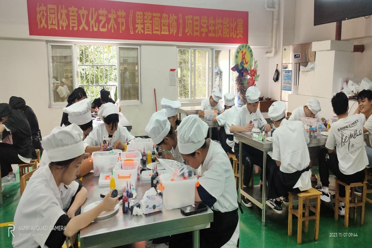 11月7日,旅游服务与教育科举行了《果酱画盘式》、《刀工技术》、《茶艺》项目学生技能比赛。《果酱画盘式》项目比赛以盘为纸,以果酱为墨,在一涂、一抹、一点、一画之间展现盘艺魅力。《茶艺》项目比赛过程中,学生展示自我,技能比拼,充分体现了精益求精、追求卓越的工匠精神。《刀工技术》项目比赛过程中,学生积极认真,操作熟练,发挥所长。技能比赛检验了专业老师的教学成果,也考核了学生对技能掌握的熟练程度,还让学生的美育得到了一定程度的提升。