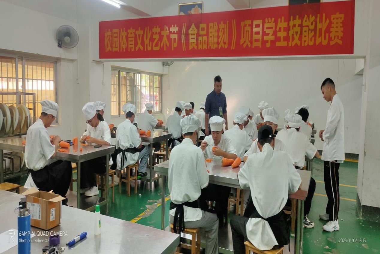 (通讯员:旅游服务与教育科全体成员)在我校第十七届校园体育文化艺术节中,为进一步提高学生的专业技能,提升教师的教学专业技术水平,2023年11月6日-11月9日,旅游服务与教育科隆重举行了《中式铺床》、《食品雕刻》等项目学生技能比赛和旅游酒店专业、中餐烹饪专业教师基本技能测试。